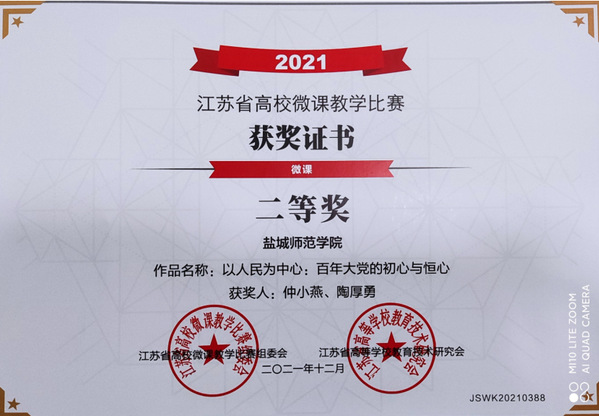3.师资素质显著提升。学院严格按师生比不低于1:350核定专职思政课教师岗位。成立思政课教师高层次人才引进和培养工作小组,坚持外引和内培相统一。组织教师参加校内外教学比赛,锤炼提升教学水平。近年来,教师获省微课教学比赛一等奖1项、二等奖2项、省思政课教学展示一等奖1项、省智慧教学大赛二等奖1项。出版省“十三五”重点教材2部,获江苏省高等教育教改研究课题1项、省基础教育教学成果奖1项。2021年2名教师获高尚师德奖教金。
