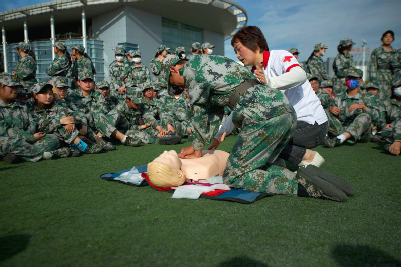 盐城市红十字会救护培训老师结合实例详细讲解了一些突发事件的自救互救处理办法,通过模型仪器向同学们演示了心肺复苏的操作方法和自动体外除颤器(AED)的使用方法。为了使学生更好地掌握急救技能,救护培训老师还指导学生进行心肺复苏实践,纠正学生们在实际操作中的错误。