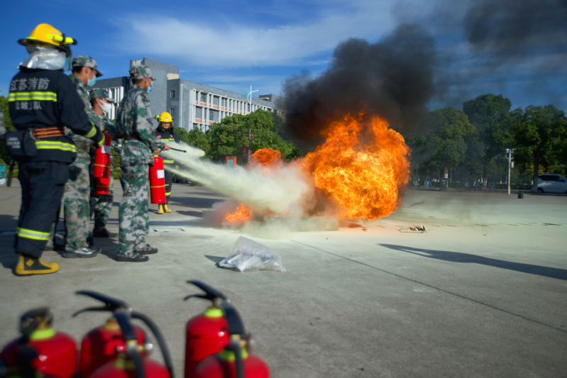 盐城市消防救援支队、学校消防工作人员和消防维保单位人员通过理论宣讲、实验演示、消防疏散逃生演练等方式,向学生讲解火灾事故预防、安全自救逃生等消防安全知识以及灭火器、防护面罩等消防器具的使用方法,开展灭火实践操作演练,提高学生对突发火情的扑救能力。演练结束后,庞校长为参与演练的盐南高新区消防救援大队三位同志颁发了校外消防辅导员聘书。