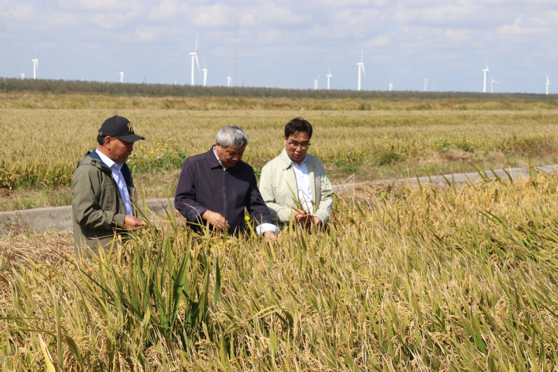 江苏省农科院粮食作物研究所副所长张亚东在现场表示,盐碱地上长出高产水稻具有极大的前瞻性和社会意义,符合当前国家向土地要粮、向盐碱地要粮的大方针政策,值得借鉴推广。