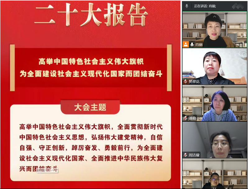 11月6日,校民进支部主委肖丽线上组织召开会议强调,认真学习、准确领会中共二十大报告的丰富内涵,对于深刻领悟“两个确立”,坚决做到“两个维护”,奋力开创新时代教育工作新局面具有重要意义。自觉践行“六个坚持”,学思用贯通、知信行统一,在“实施科教兴国战略,强化现代化建设人才支撑”上建功新时代,把研究成果落实到乡村产业、人才、文化、生态、组织的高质量发展上来,继续大力开展“助力乡村振兴”的支部特色工作,在践行全过程人民民主中发挥作用。