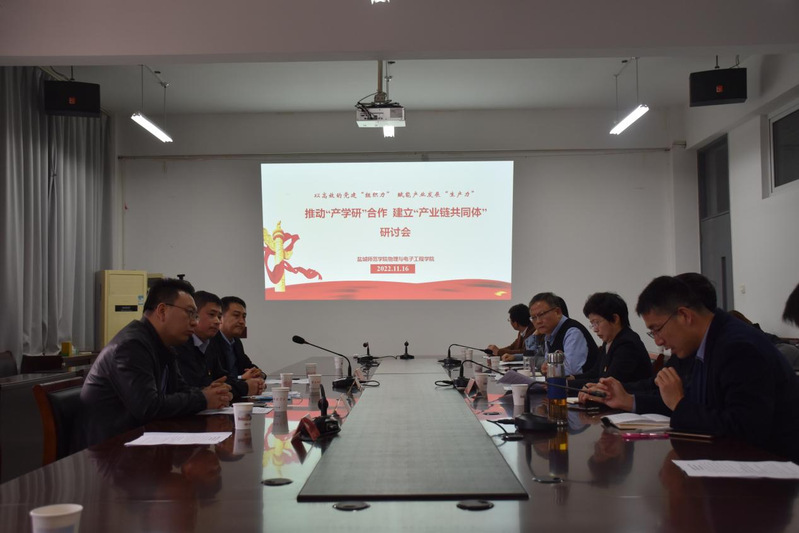聚焦打造“产业链共同体”。双方就进一步加强校企合作、深化产教融合进行深入探讨。物理与电子工程学院副院长张志海介绍了学院专业设置、培养方向、校企合作情况和学科建设、人才培养等方面取得的成绩,希望以“资源共享、合作共赢、互相促进、共同提高”为目标,构建党建引领、教科研协调发展的“校企合作”新格局。科森科技东台有限公司党支部书记余益全面介绍了公司业务、研发方向、人才队伍等情况,希望借助高校党建平台,进一步推动“产教学研训”合作。研发部总监杨立新针对产品研发、工程应用等方面与该院教授博士进行深入交流,双方希望在推动科技研发、成果孵化转化等方面共同发力,实现科研成果更快更好转化。