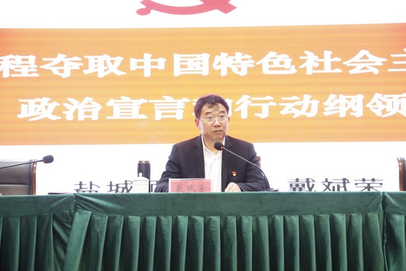 市委宣讲团成员、学校党委书记戴斌荣11月22日来到盐城生物工程高等职业技术学校,为该校师生宣讲党的二十大精神。盐城生物工程高等职业技术学校党委书记、校长孙永龙主持报告会。该校近7000名师生员工线上线下同步聆听、收看、学习。