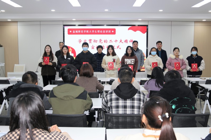 启动仪式上,与会老师为42名大学生理论宣讲团成员发放了聘书。校党委宣传部、马克思主义学院相关老师及大学生理论宣讲团全体成员出席启动仪式。