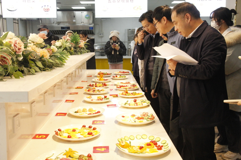 在烹饪技能比赛中,食堂大厨们各施所长、精心烹饪各色美食,美味佳肴缤纷呈现。为保证比赛公平、公正,特邀相关二级学院、部门领导担任评委现场打分。评分结束后,一道道令人垂涎的美食摆上台面供学生免费品尝,色香味俱佳的菜品吸引学生驻足观赏,大饱口福。