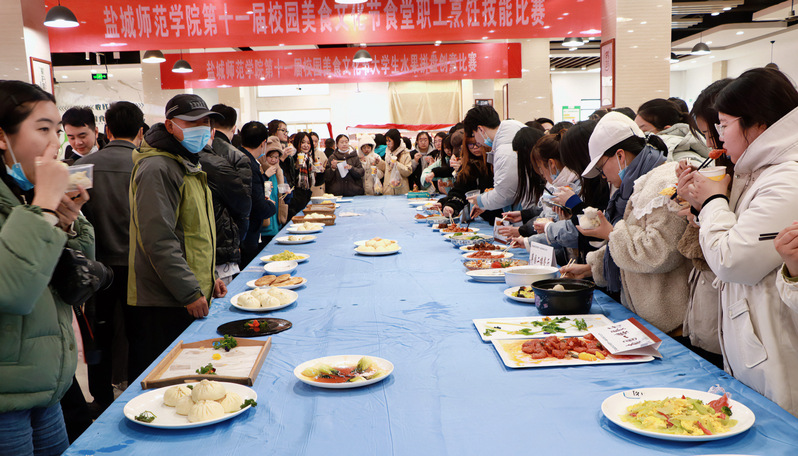 11月30日下午,KY开元集团官网入口第十一届校园美食文化节在通榆校区南园食堂隆重开幕。本次美食节为期两天,以“尽享盐师味,不负好‘食’光”为主题,通过组织开展烹饪技能比赛、水果拼盘比赛、蒙眼猜美食、曲奇接力等一系列活动,积极倡导健康饮食理念,营造良好的校园餐饮文化氛围。