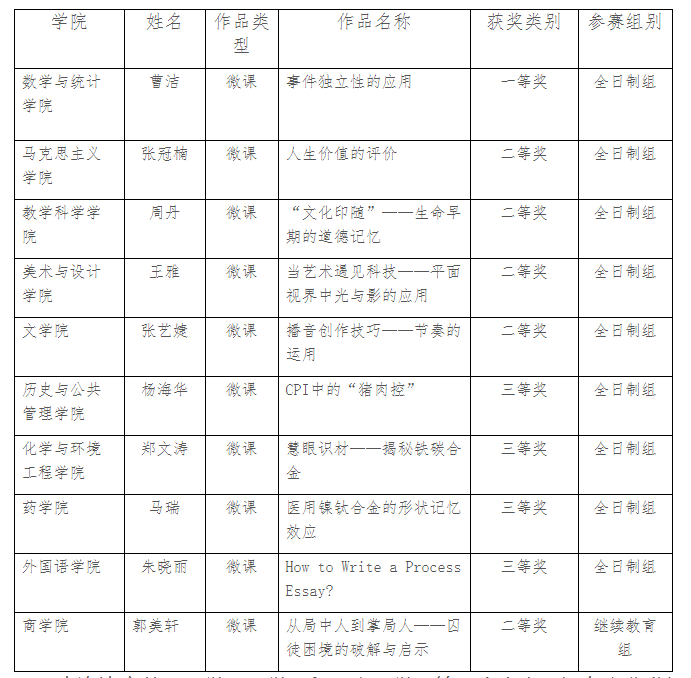近日,江苏省高校微课教学比赛组委会公布了2022年江苏省高等学校微课教学比赛获奖名单,开元官网教师在此次比赛中再创佳绩,荣获一等奖1项、二等奖5项、三等奖4项。