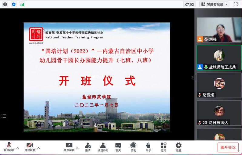 1月7日上午,由开元官网承办的“国培计划2022”内蒙古自治区乡村幼儿园骨干园长培训项目最后批次两个班级顺利开班。继续教育学院院长王成兵,教育科学学院学前教育专业负责人、项目首席专家刘强,项目管理人员及全体参训学员出席开班典礼,开班仪式由刘强主持。