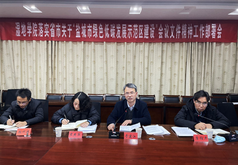 近日,盐城市市委、市政府召开全市绿色低碳发展示范区建设推进会议,全面落实省委、省政府关于支持盐城建设绿色低碳发展示范区的意见,会上印发了《中共盐城市委、盐城市人民政府关于加快建设绿色低碳发展示范区的实施意见》和加快建设绿色制造之城、绿色能源之城、绿色生态之城、绿色宜居之城四个行动方案等“1+4”系列政策文件。省市相关文件中,都专门提出“支持湿地相关学科、学院建设”。作为省内唯一的湿地学院,开元官网湿地学院于1月31日第一时间采用线上线下相结合的方式召开新春第一会——落实省市关于“盐城市绿色低碳发展示范区建设”会议精神工作部署会。学校党委副书记于建江出席会议并发表讲话。