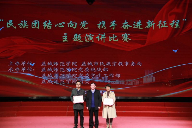 校党委常委、副校长庞波,盐城市委统战部副部长、市民宗局局长黄斌,校党委常委、统战部部长费正皓,盐城市民宗局副局长王尤东、陈铁汉,盐城市民宗局民族处处长李卫东及相关二级学院学工书记出席了本次活动,300多名大学生代表观看了比赛。