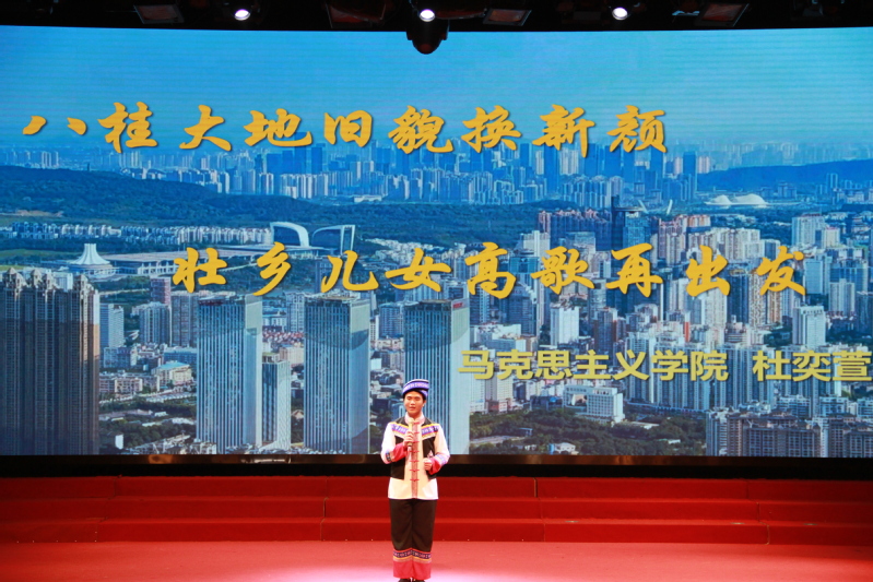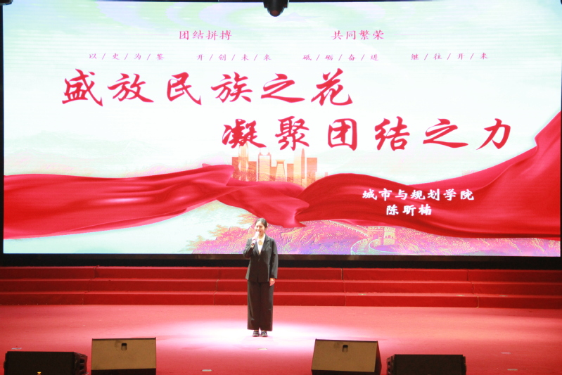 来自汉族的陈昕楠同学以“盛放民族之花,凝聚团结之力”为演讲题目,从悠悠中华几千年积累的优秀传统文化中探索中华民族推崇“团结奋进”理念的深厚渊源;来自壮族的杜奕萱同学以“八桂大地旧貌换新颜,壮乡儿女高歌再出发”为题,讲述了自己跟随精准扶贫工作组见证戈贤村脱贫攻坚的民族团结故事;来自侗族的周密同学以“侗乡人成长在党旗下”为题,与大家分享了“感党恩,资助情”的个人成长故事;来自布依族的杨小雨同学演讲的题目是“民族心连心,永远跟党走”,展示了布依族的传统手工艺技术,介绍了布依族的传统文化。最后,整场演讲活动在歌曲《七月的草原》和舞蹈《亚丽古娜》中圆满落幕。