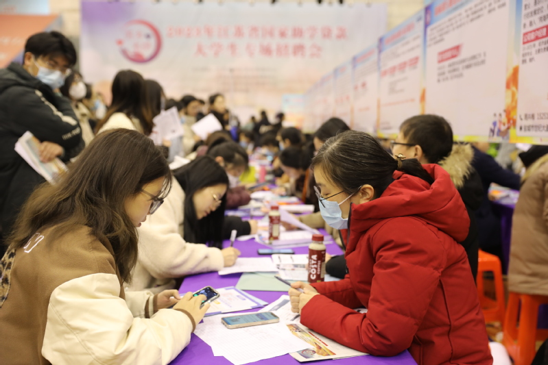 本次招聘会共有220多家用人单位参加,发布岗位需求16000多个,覆盖中初教育、生物医药、新能源、电子信息、现代服务业等不同行业。招聘现场人头攒动,每个展位前都挤满了咨询应聘的毕业生。