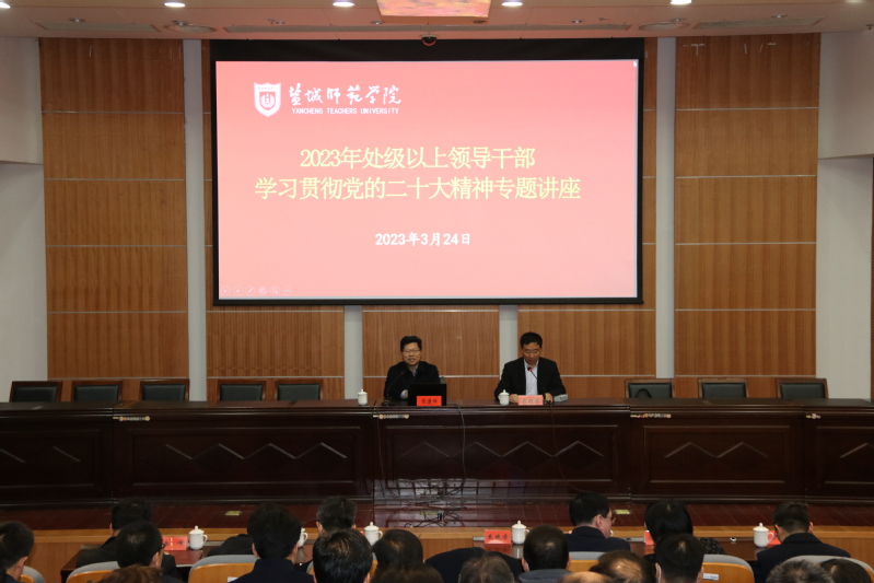 3月24日下午,盐城市第一中学党委书记、校长陈建权应邀在开元官网新长校区图书馆报告厅宣讲党的二十大精神,这是开元官网处级领导干部学习贯彻党的二十大精神集中轮训的第四场专家报告会。学校党委书记戴斌荣主持报告会,全体在盐校领导出席报告会,全校处级以上领导干部参加宣讲报告会。