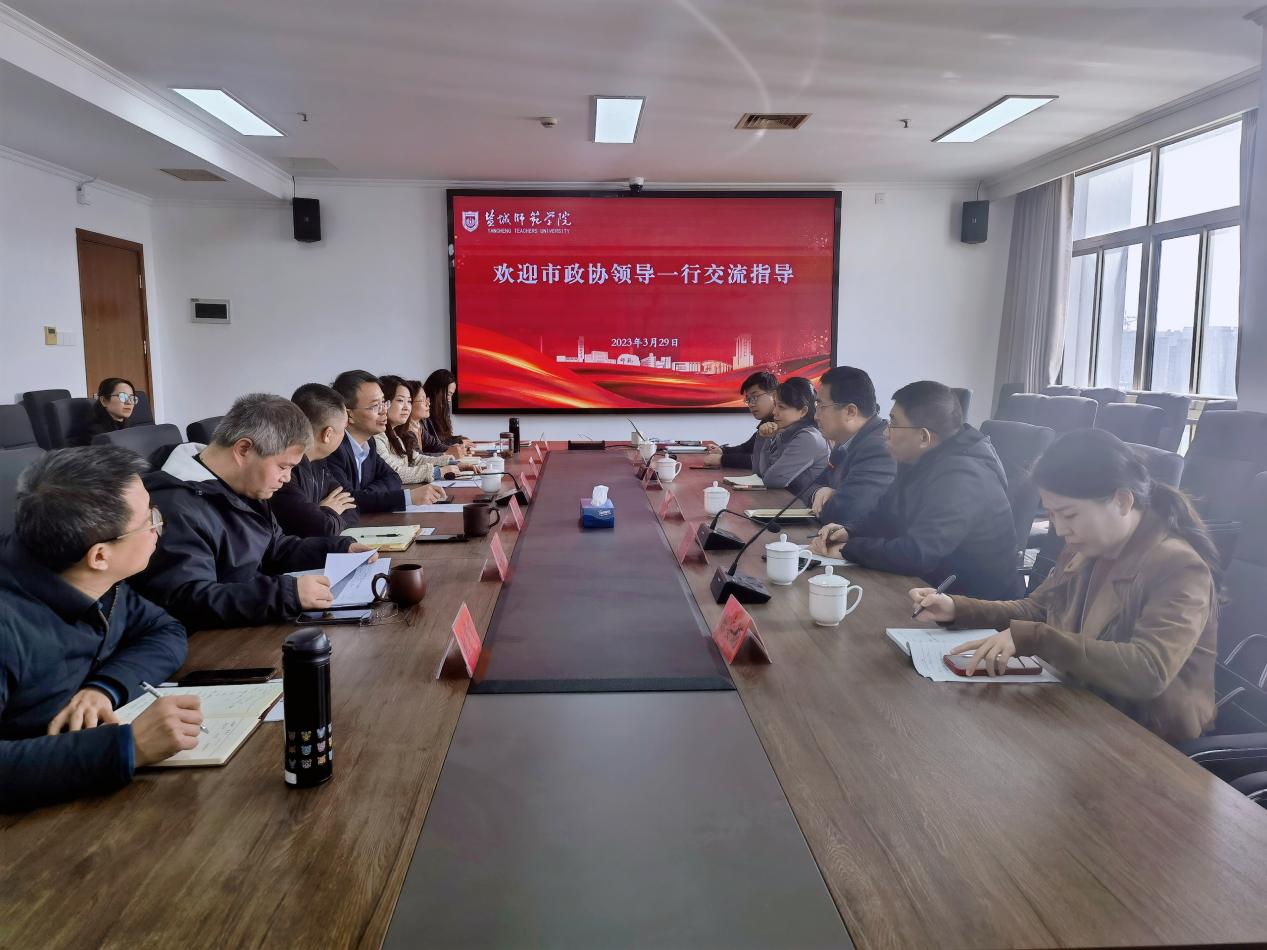 于建江代表学校对市政协调研组表示欢迎,并简要介绍了学校基本情况及在培养应用型人才服务区域经济发展所取得的成绩。他指出,要进一步深入学习贯彻习近平总书记关于做好新时代党的统一战线工作的重要思想,积极策应江苏高质量发展新格局;要与盐城市政协联合开展调查研究,围绕市政协工作的实际,深入开展长期交流与合作,助推高质量研究成果产出;教科院要积极开展调查研究工作,把科研成果转化为决策咨询报告,推动学校事业高质量发展,服务地方社会经济发展。