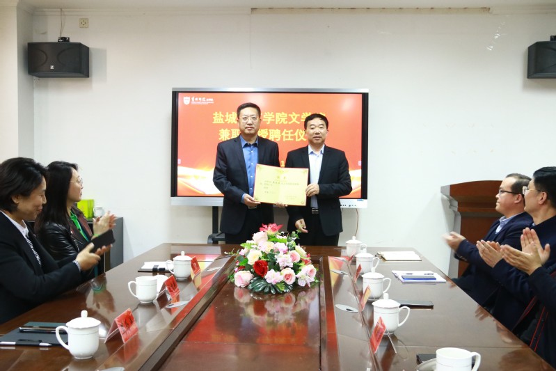 盐城广播电视总台副台长张苏艳、办公室主任陈军、人事处处长陈莉莉、新闻中心主任戚红权以及学校党委宣传部、人事处、文学院主要负责同志、文学院师生代表参加聘任仪式。