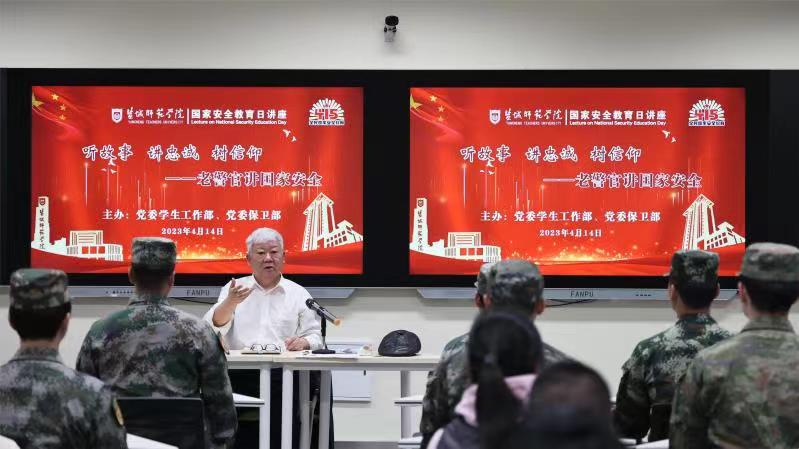 老警官首先回顾了自己当年的校园生活,高度赞扬了母校当年的培养,为自己几十年工作中的为人民服务奠定了坚实的基础。接着,他结合法律相关规定和贴合校园生活的案例,以真挚的情感、通俗的语言,详实的案例,从宏大的时间跨度讲述了国家安全的基本内涵、主要内容等,使得学生在听故事的过程中理解忠诚,树立信仰。老警官强调,新时代的大学生不仅要有为人民服务的思想,还要有为人民服务的本领,要德智体美劳全面发展,不断提高自身能力和水平报效祖国。
