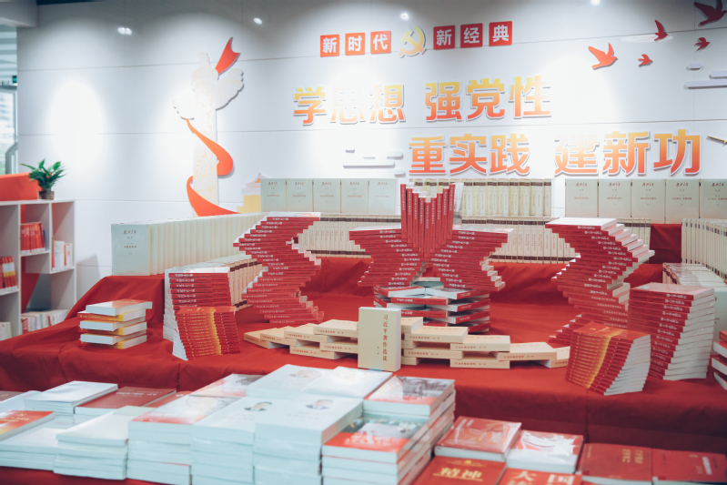 本次主题图书展共展出《习近平新时代中国特色社会主义思想学习纲要(2023版)》《习近平新时代中国特色社会主义思想专题摘编》《习近平著作选读》第一、二卷等300余种共计1000余册主题图书,涵盖习近平总书记著作、讲话单行本、权威部门等编写的论述摘编、学习读本、思想研究、用语解读以及描写习近平总书记工作生活经历的权威读物,内容涉及政治、经济、文化、社会、党建和外交等领域。