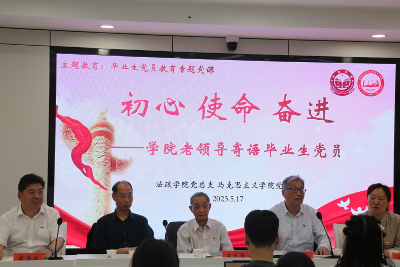 近日,为给毕业生党员上好大学期间的“最后一次”党课,法政学院、马克思主义学院邀请原政史系主任王文华、原经济与法政学院党总支书记彭益民、原马克思主义学院党总支书记许进等三位老领导上了一堂以“初心·使命·奋进”为主题的党课。三位老党员与毕业生党员分享自己入党初心和如何做一名合格党员的思考,并与40名毕业生党员一起重温入党誓词。