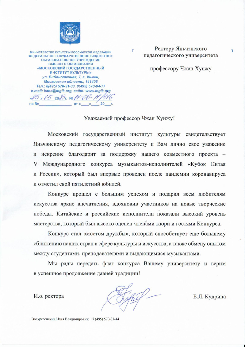 近日,开元官网与莫斯科国立文化学院联合举办的“中俄杯”国际声乐、钢琴、小提琴大赛在莫斯科国立文化学院音乐厅举行。本次大赛以视频参赛和现场参赛两种方式进行。学校党委副书记、校长张宏如以视频方式为开幕式致辞。
