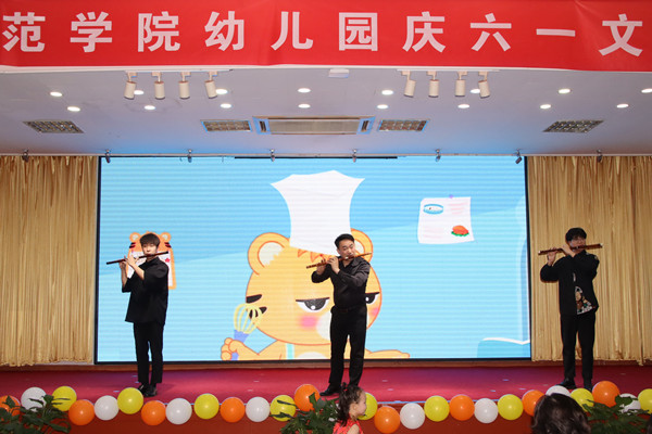随着主持人的闪亮登场,演出正式拉开帷幕。独具古风的舞蹈《悯农》《读唐诗》,铿锵有力的花式球操、椅子舞《中国牛》,轻松活泼的表演唱《庆祝六一》《勇气大爆发》,引人入胜的情景剧《狼和小羊》,以及家长、大学生倾情助演的笛子、古筝演奏,舞蹈《国家》《小卜少》、《爱的圈圈》等,赢得台下观众阵阵掌声。