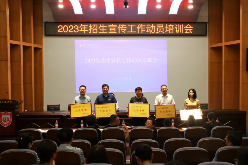 庞波宣读2022年招生工作先进集体和先进个人表彰决定。与会校领导为2022年招生工作先进集体颁奖。