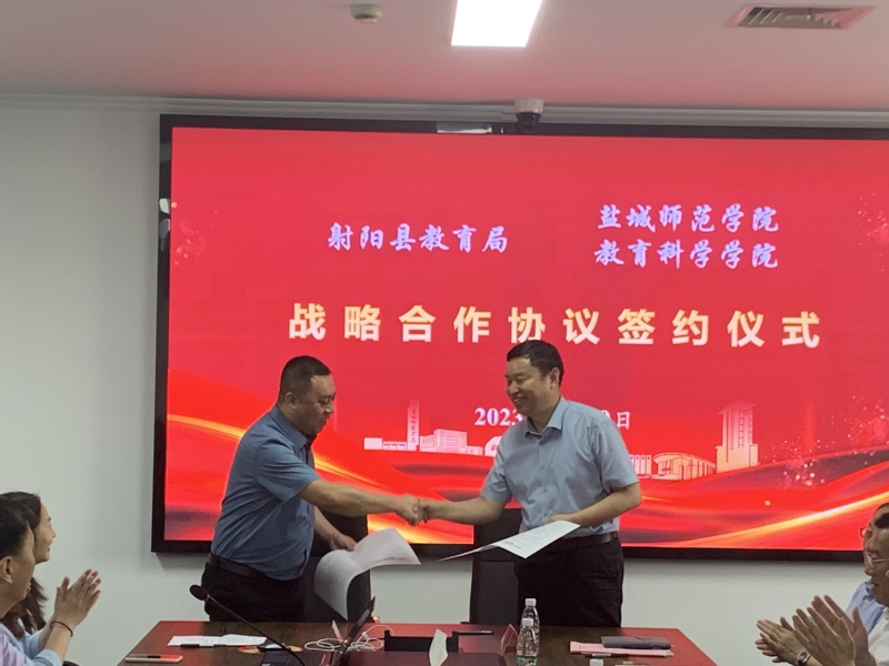 仪式上,周正林与柴江共同签署了战略合作协议。未来,教育科学学院将与射阳县教育局进一步加强对接,开展新时期教师赋能培训,共建终身学习高端人才培养示范基地,以更加奋发有为的状态推动盐城教育高质量发展不断迈上新台阶。