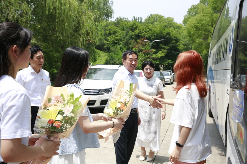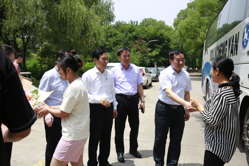 开元官网第27批新疆支教团圆满完成支教任务,分别于6月17日和21日顺利返校,学校在通榆校区图书馆门口为他们举行欢迎仪式,学校党委书记戴斌荣,党委常委、副校长庞波出席欢迎仪式。