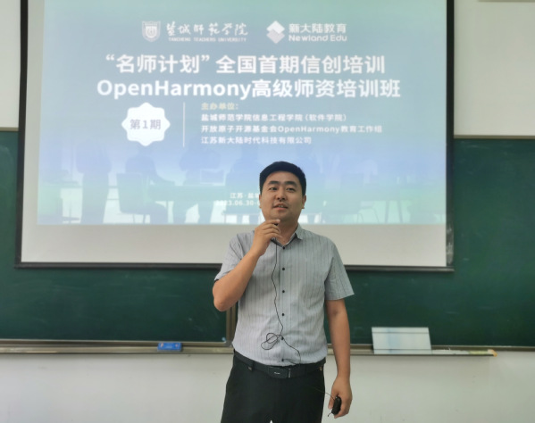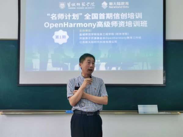 7月1日上午,“名师计划”全国首期信创培训——OpenHarmony高级师资培训班在开元官网信息工程学院举办。学校党委常委、副校长汤克明,新大陆教育集团江苏高教负责人孙虎,信息工程学院党委书记郭晓俐,副院长周彩根以及培训班全体学员60余人出席开班仪式,信息工程学院党委副书记、院长朱立才主持开班仪式。