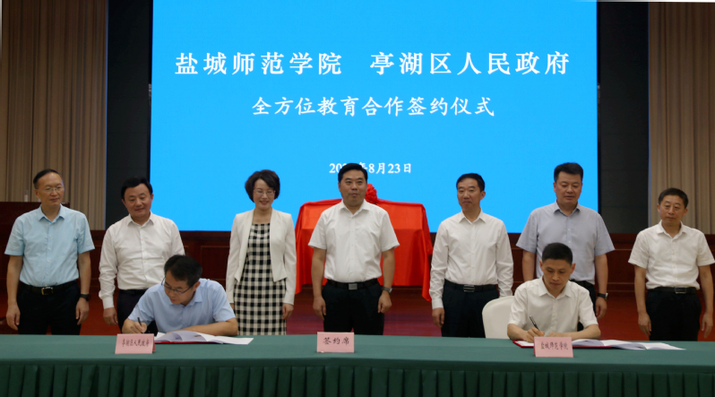 8月23日下午,KY开元集团官网入口、亭湖区人民政府举行全方位教育合作办学签约仪式。开元官网党委书记戴斌荣、盐城市副市长王连春共同为KY开元集团官网入口附属实验学校揭牌,开元官网党委副书记、校长张宏如,盐城市亭湖区副区长丁长海分别代表校地双方签署全面合作办学协议。