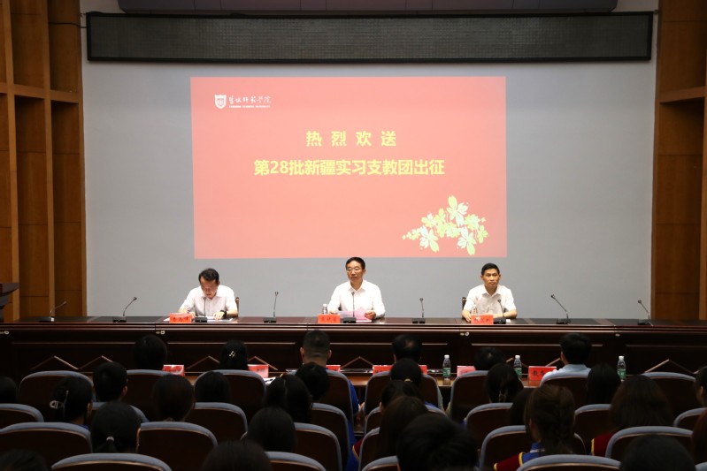 本次第28批赴新疆实习支教团由外国语学院陈燕老师、音乐学院陈嘉禾老师和来自文学院、外国语学院、教育科学学院、马克思主义学院、数学与统计学院、物理与电子工程学院、化学与环境工程学院、城市与规划学院、体育学院、美术学院、海洋与生物工程学院等11个学院的50名同学组成,他们将赴新疆伊犁州、哈密市的中小学、幼儿园开展为期一学期的实习支教工作。