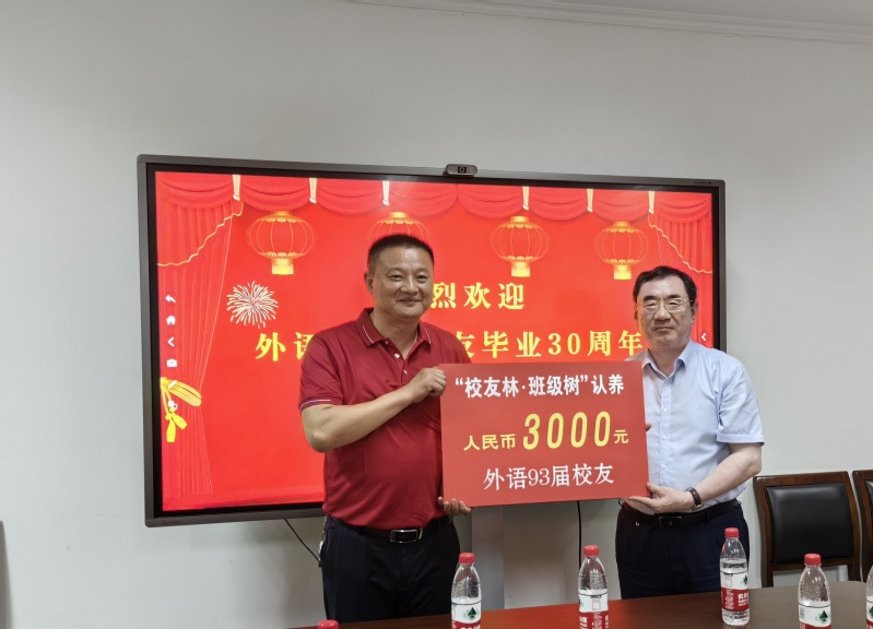 会上,外国语学院院长范能维简要介绍学院近几年的发展情况。大家与昔日的老师重温在校时的难忘往事,表达对母校、老师的感恩之情和美好祝愿。作为永久纪念,外语93届全体同学在当年的教学楼前认养了一棵班级树。八方校友情,一棵感恩树,寓意母校桃李芬芳,人才辈出,继往开来,再创佳绩。