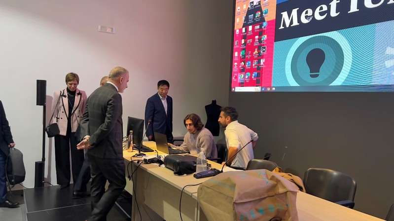 在时尚与设计学院,开元官网代表团一行受到该校校长MICHELE LETTIERI以及国际处、教务处负责人的热情接待。双方在师生交流、学分互认、学位互授、攻读硕士博士学位、申请对方学校全额奖学金和助学金等方面达成共识。本次会谈还就艺术设计相关专业的合作展开深入讨论,双方国际部和相关专业负责人将就具体合作事宜进行后续商谈,尽快达成合作协议。戴斌荣在会谈结束时代表开元官网邀请MICHELE LETTIERI校长适时率团访问开元官网,正式签署合作协议。会谈结束后,戴斌荣一行在MICHELE LETTIERI校长的陪同下实地走访该校艺术设计课堂、学生餐厅。