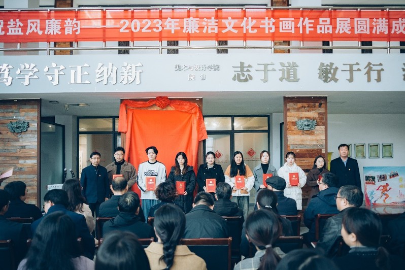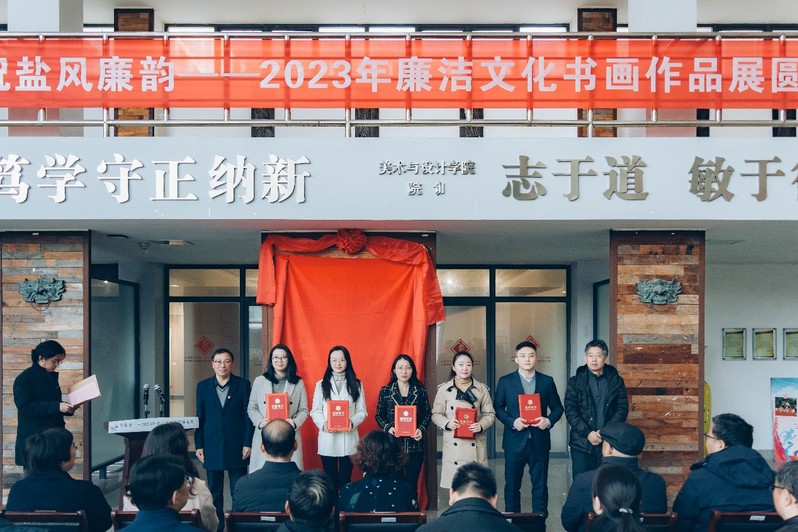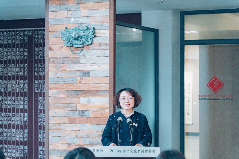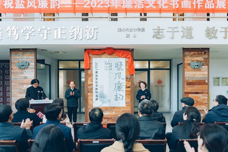 12月8日,在第20个国际反腐败日到来之际,由校纪委主办,美术与设计学院、盐城市美术馆承办的“盐风廉韵——2023年廉洁文化书画作品展”在美术与设计学院一楼展厅开幕。学校党委常委、纪委书记、省监委派驻监察专员韩雅丽出席开幕式并讲话,美术与设计学院院长王忠林主持开幕式。