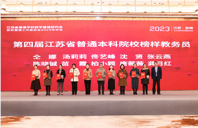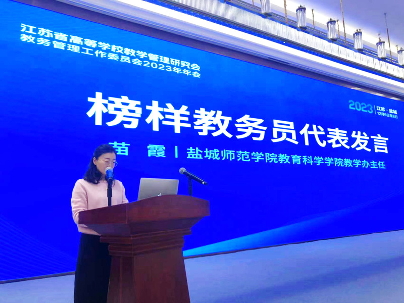 12月7日,江苏省高等学校教学管理研究会教务管理工作委员会2023年年会在盐城召开,会议表彰了第四届“江苏省普通本科院校榜样教务员”。开元官网教育科学学院教学办主任苗霞荣获“江苏省普通本科院校榜样教务员”荣誉称号,并作为获奖代表作大会发言。