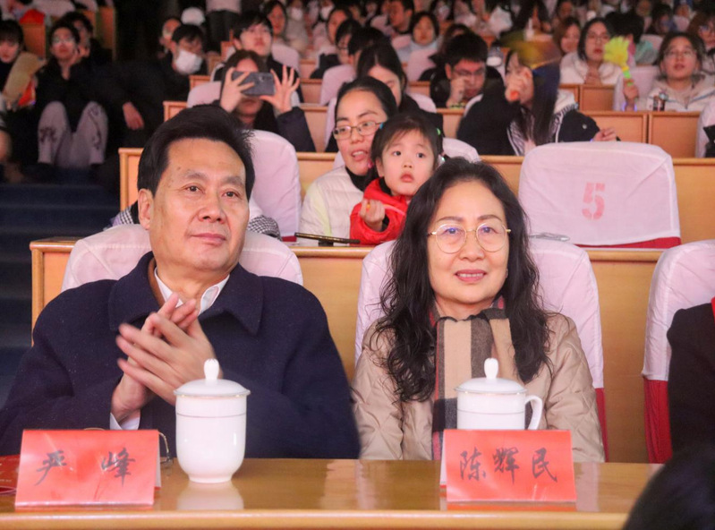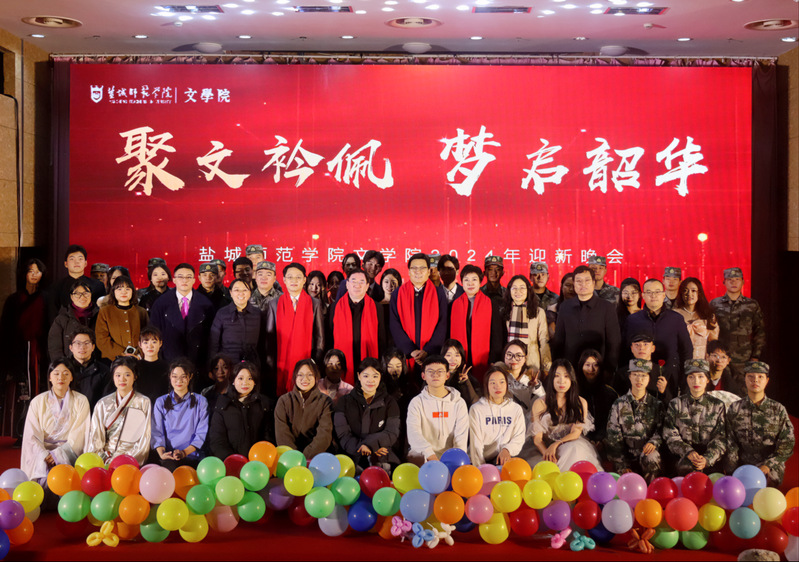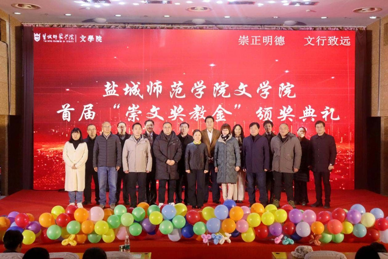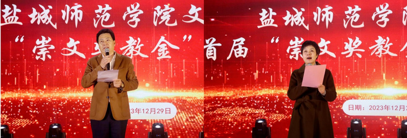 12月29日,文学院首届“崇文奖教金”颁奖典礼暨2024年迎新晚会在通榆校区国际会议中心举行。学校党委常委、副校长、教育发展基金会副理事长庞波,“崇文奖教金”捐赠者中文83届校友、盐城市钢铁商会会长、无锡市蔚联钢铁有限公司总经理、校友严峰夫妇,文学院党政班子全体成员及师生代表近四百人参加颁奖典礼。