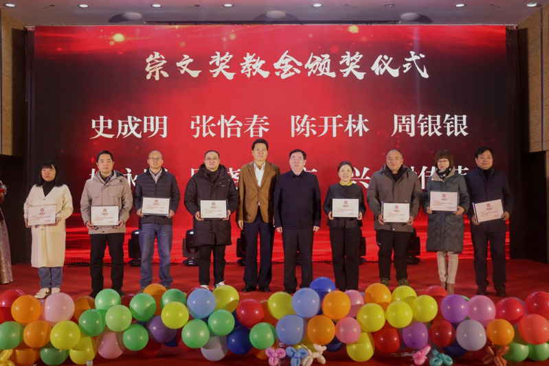 经个人申报、资格审查、专家评审、学院公示等环节,文学院顺利完成首届“崇文奖教金”评审。当晚,庞波和严峰共同为获得文学院首届“崇文奖教金”的史成明、张怡春、陈开林、周银银、姚永明、顾晓玲、高兴、谢传荣8位教师颁奖。崇正明德,文行致远。“崇文奖教金”的设立,是严峰先生40年来始终心系母院文学院的写照。此次颁奖典礼不仅传递了捐赠者严峰夫妇对母院文学院打造“四有”好老师的衷心祝愿,也鞭策激励着全院教师立德树人、潜心治学,当好学生成长的引路人。