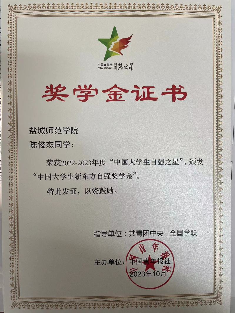 获批省思政课一体化建设示范项目。“中国淮剧”项目获批江苏省中华优秀传统文化传承基地。获全国“国防万映”公益展映活动“优秀组织奖”。启用“一站式”学生社区。建成润心工作室——“悦”空间。1个团队获评团中央“2023 年‘三下乡’社会实践优秀团队”,2个大学生创新创业项目获团中央“大学生创业帮扶计划”立项资助。1人获评全国第十七届“大学生年度人物”提名奖、全国“优秀共青团员”,1人获评2022年度“中国大学生自强之星”荣誉称号。