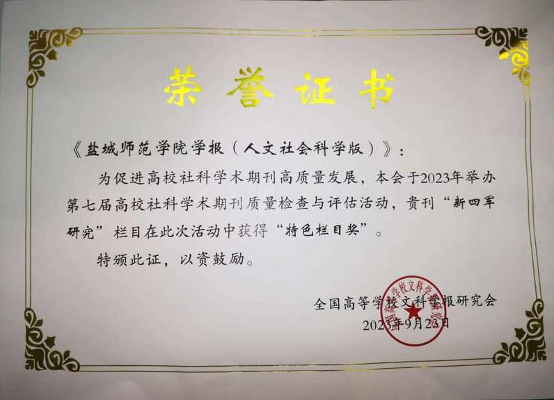 3个学科在省“十四五”重点学科中期检查中获评“优秀”等次。获省哲社优秀成果奖7项。新增省级平台2个,江苏沿海发展研究基地升级为省决策咨询重点研究基地。决策咨询报告获省部级领导批示6份。获中国智库研究与评价中心(CTTI)2023年度智库研究优秀成果一等奖,1个案例获评2023年度智库建设最佳案例。学报影响力指数学科排序上升109位,“新四军研究”栏目荣获全国高等学校社科期刊“特色栏目”奖。