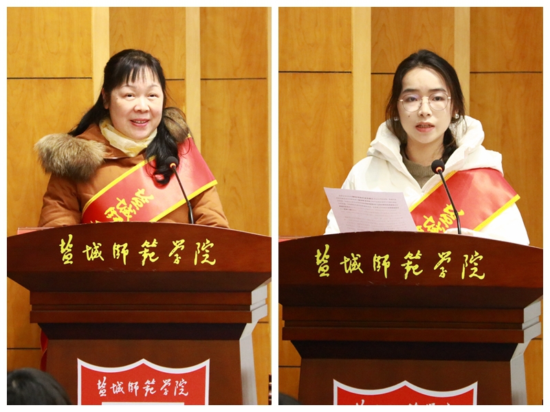 第29批新疆实习支教团学生代表、文学院季佳楠同学以及带队教师代表、外国语学院陈燕教授分别发言。