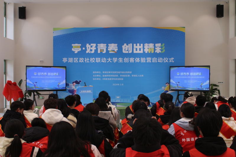 为深度开展校地、校企合作,全力促进学生更高质量就业,3月13日下午,校团委与亭湖团区委、亭湖区人社局联合举办校地联动大学生创客体验营启动仪式。亭湖区委常委、组织部部长、统战部部长张云云,亭湖团区委书记周莹、亭湖区人社局副局长朱宏军、上海瑞谷传祺创业投资管理有限公司总裁王凤梅,开元官网团委书记陈晔、团委副书记刘成及40名学生代表参加活动。