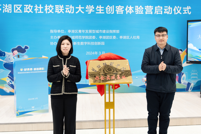 活动中,张云云介绍亭湖区建设青年发展型城市的相关情况,朱宏军讲解亭湖就业创业的优惠政策,在园企业——盐城异数科技有限公司创始人刘明阳分享创业事迹。陈晔和8号新生数字科技创新园运营经理苏凡博共同为“大学生社会实践基地”揭牌。与会嘉宾共同启动大学生创客体验营。