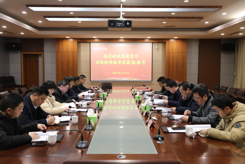 会上,学校保卫处处长杨海东汇报学校安全稳定工作情况。专家组查看学校安全工作台账资料,实地走访检查食堂、学生宿舍、化学与环境工程学院实验室、危化品仓库等重点场所。