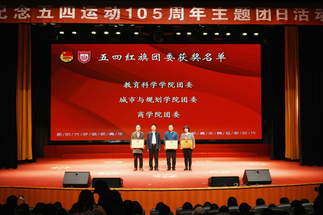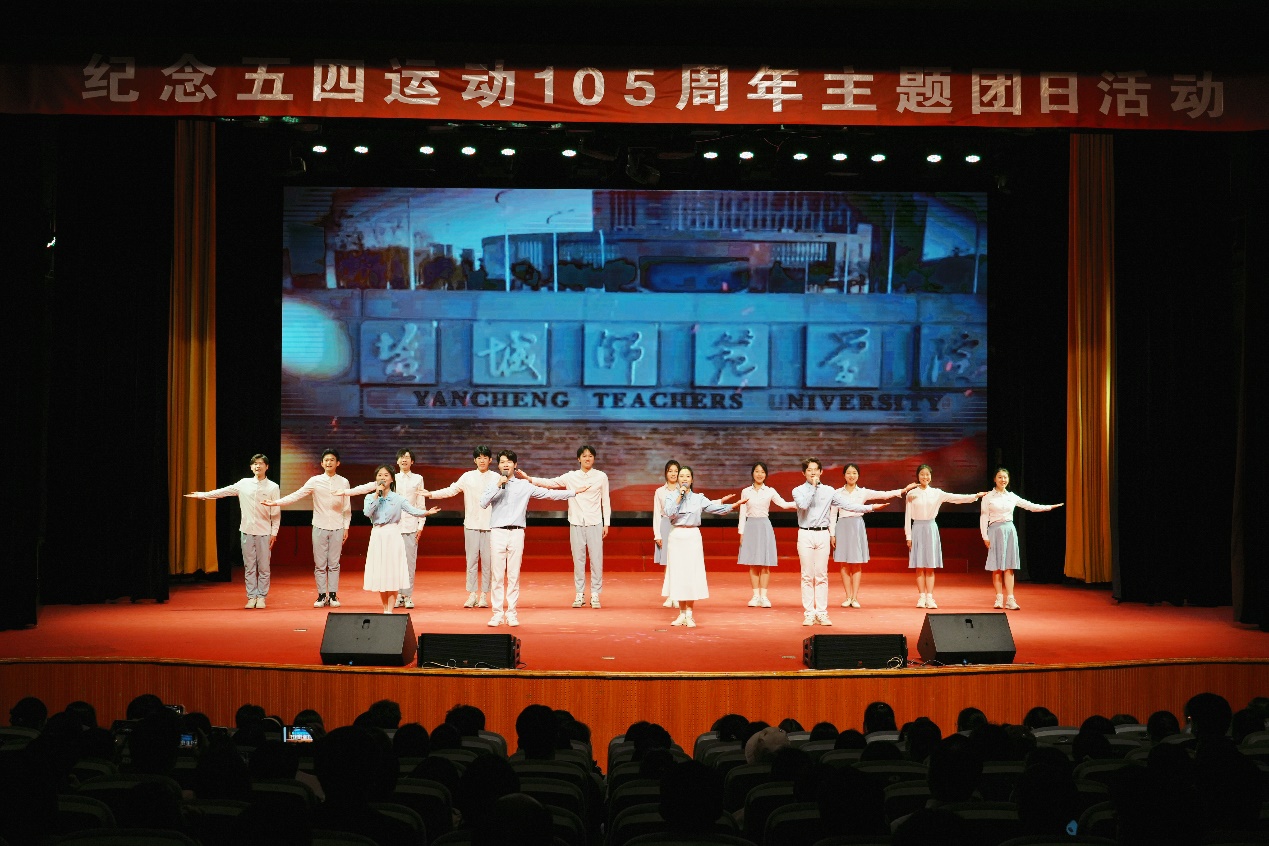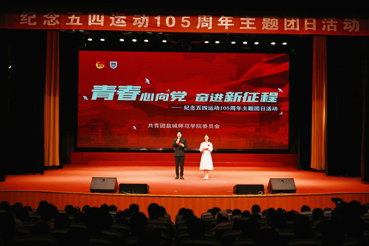 在第四篇章“青春·勇毅前行”,戴斌荣、庞波分别为在共青团工作中表现突出的基层团组织和个人颁奖。诗朗诵《鲜花点亮青春》展示盐师青年学子昂扬的精神风貌,以奋斗姿态激扬青春,不断书写新时代“青春答卷”。