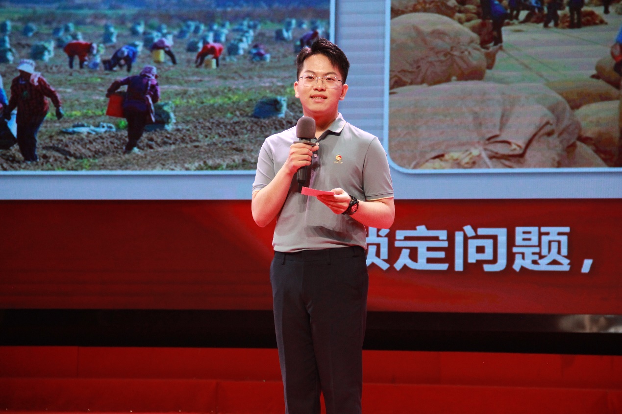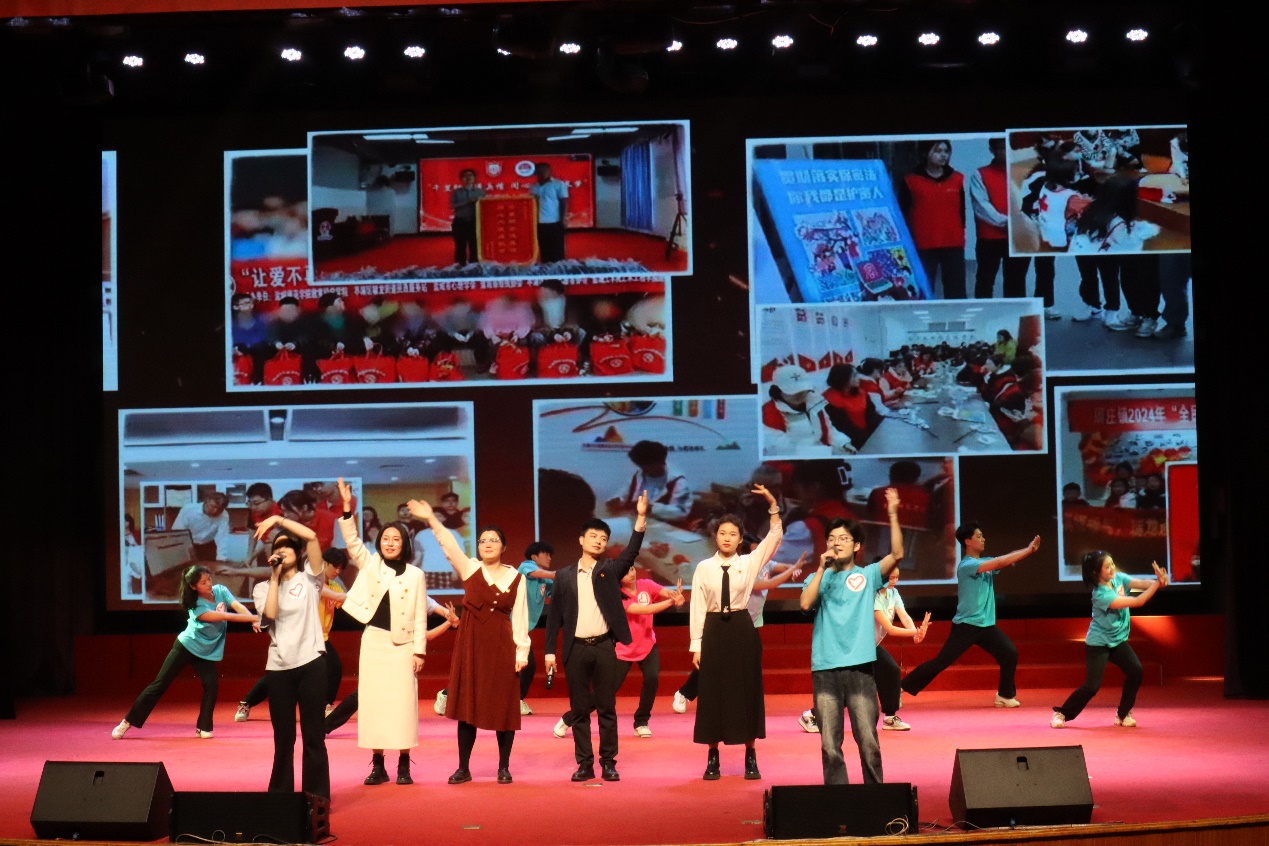 在第三篇章“青春·挺膺担当”,杰出校友代表曹梦灵、裴宁、郭凯辰分享他们在基层岗位上助力乡村振兴的青春故事。海洋与生物工程学院2020级学生朱志鹏回顾他大学四年在生物医药领域深耕的心路历程。志愿者代表孙远乾、戴志萍和校青年志愿者协会成员以情景音诗画的形式共同演绎志愿服务故事。