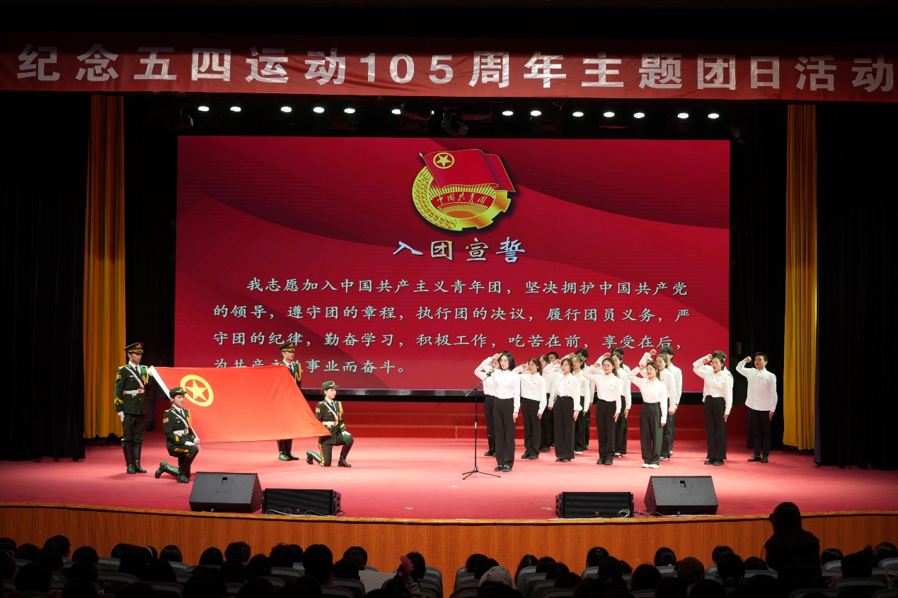 活动在《中国共产主义青年团团歌》中拉开帷幕。在第一篇章“青春·初心如磐”,湿地学院党总支副书记何静为大家带来“你好,新青年!”信仰公开课,带领大家回顾岁月长河中的青春之火、信仰之光。学校团委学生兼职副书记龚天阳带领新入团团员代表,面向鲜红的团旗立下庄严宣誓。