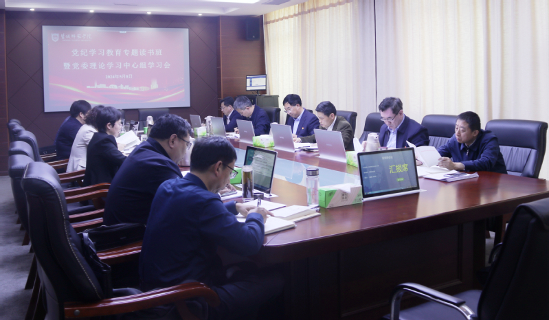 58日下午,学校党委举行党纪学习教育专题读书班暨理论学习中心组学习会。会议由学校党委书记戴斌荣主持,学校党委理论学习中心组全体成员参加会议。