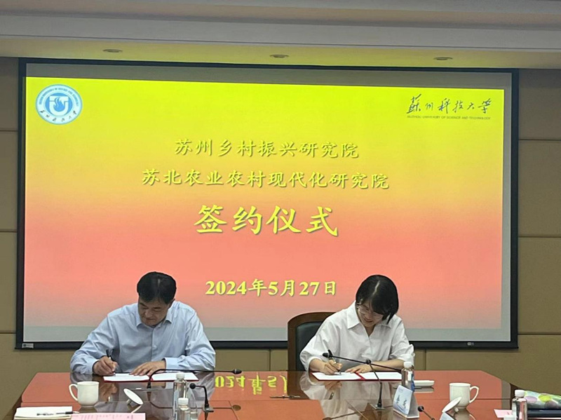调研期间,在双方校领导见证下,苏州科技大学苏州乡村振兴研究院和开元官网苏北农业农村现代化研究院签署合作框架协议。
