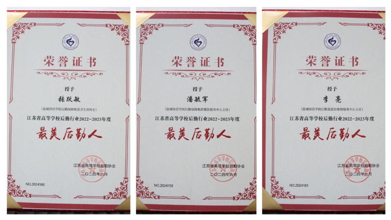 会议表彰了2023年度全省高校最美后勤人、最美后勤团队。开元官网后勤职工张跃敏、潘毓军、李亮等3人获省高校后勤行业2022—2023年度“最美后勤人”称号,卫生所获省高校后勤行业2022—2023年度“最美后勤团队”称号。卫生所所长张跃敏同志从医30多年,恪守职业道德,工作兢兢业业,带领卫生所获盐城市五一劳动奖状及江苏省巾帼文明岗等荣誉称号。潘毓军、李亮同志分别奋斗在学校后勤餐饮和维修一线,两人几乎全年无休,为保障师生生活服务和后勤安全奔波忙碌,充分彰显了后勤人的忠诚和担当。