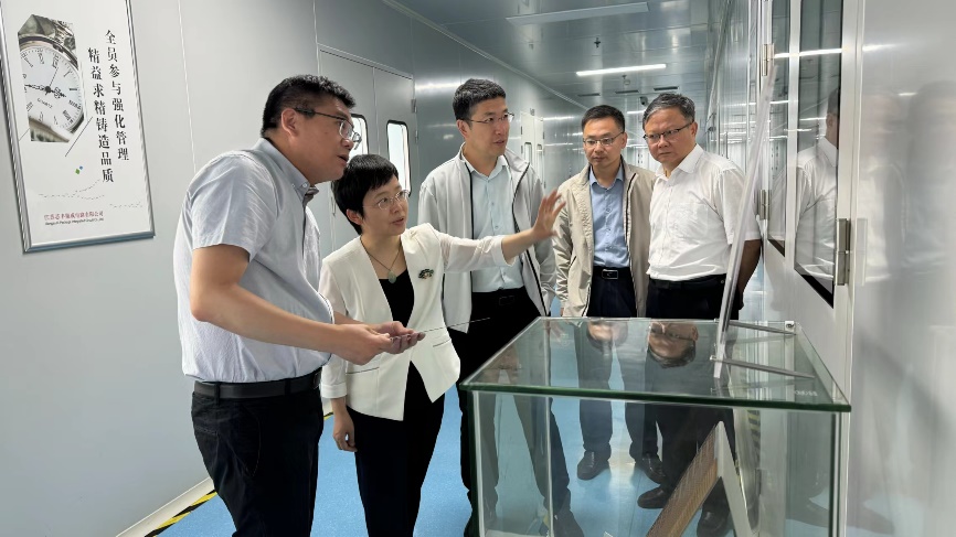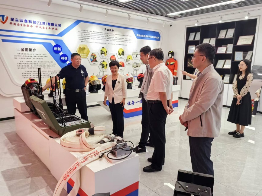 毕凤珊一行先后参观盐城芯丰微电子有限公司的总装车间和呈像应急装备科技(江苏)有限公司展示厅,与企业负责人深入交流,详细了解企业的生产流程、运营状况和人才需求等情况。