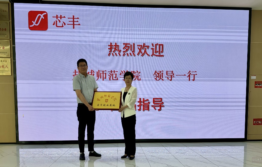 毕凤珊为两家企业实习就业基地授牌。物理与电子工程学院负责同志参加走访活动并为企业实践教育基地授牌。